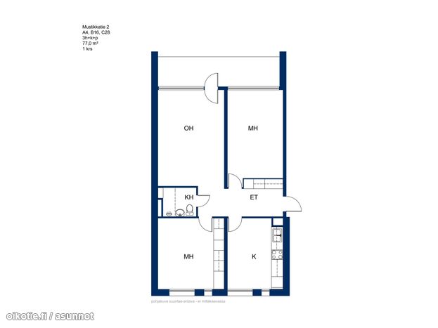 Huom! Sisäkuvat ovat toisesta vastaavanlaisesta asunnosta (peilikuva) ja vain suuntaa antavia.