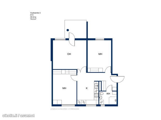 Tilava kolmio hyvällä pohjaratkaisulla sekä patiolla! Huoneisto sijaitsee talon pohjakerroksessa. Asukkaiden käytössä lisäksi maksuton pesutupa sekä 25M taloyhtiönetti.